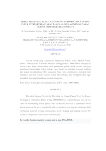 | Uncontrolled Keywords: | Sistem pendukung keputusan, pohon induk, SMARTER. |
