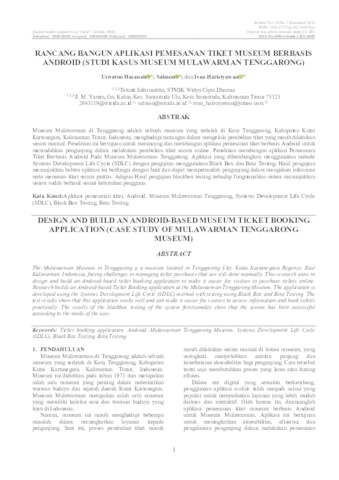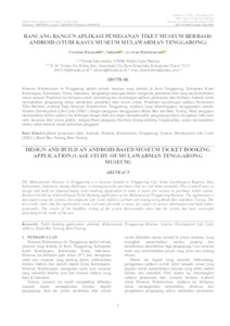 Museum Mulawarman di Tenggarong adalah sebuah museum yang terletak di Kota Tenggarong, Kabupaten Kutai Kartanegara, Kalimantan Timur, Indonesia. Namun masih menghadapi masalah dalam mengelola pembelian tiket yang masih dilakukan secara manual dilokasi museun, yang seringkali menyebabkan antrian panjang dan keterbatasan aksesibilitas bagi pengunjung. Oleh karena itu, dirancanglah aplikasi pemesanan tiket museum berbasis Android untuk Museum Mulawarman. Aplikasi ini bertujuan untuk meningkatkan aksesibilitas, efisiensi, dan pengalaman pengunjung dalam melakukan pemesanan tiket masuk museum. Metode pengembangan yang digunakan dalam penelitian ini yaitu Software Development Life Cycle (SDLC) model Waterfall. Model ini dipilih karena memiliki tahapan yang jelas, terstruktur, dan praktis. Setiap tahap harus diselesaikan terlebih dahulu sebelum melanjutkan ke tahap berikutnya, sehingga dapat mengurangi risiko pengulangan proses dan memastikan pengembangan sistem berjalan sesuai dengan harapan. Hasil dari penelitian ini adalah sebuah website manajemen dan dan aplikasi android yang dapat digunakan oleh staf loket dan pengunjung. Berdasarkan hasil pengujian blackbox testing terhadap fungsionalitas sistem, dapat disimpulkan bahwa sistem telah berjalan sesuai dengan kebutuhan pengguna. Sedangkan dari beta testing dapat ditarik kesimpulan 89,6% responden menjawab bahwa aplikasi pemesanan tiket museum berbasis android di nilai sangat baik. Hasil penelitian ini diharapkan dapat memudahkan pengunjung dalam melakukan pembelian tiket. ============================================================ garong City, Kutai Kartanegara Regency, East Kalimantan, Indonesia. However, it still faces problems in managing ticket purchases that are still done manually at the museun location, which often causes long queues and limited accessibility for visitors. Therefore, an Android-based museum ticket booking application was designed for the Mulawarman Museum. This application aims to improve accessibility, efficiency, and visitor experience in booking museum entrance tickets. The development method used in this study is the Software Development Life Cycle (SDLC) Waterfall model. This model was chosen because it has clear, structured, and practical stages. Each stage must be completed first before moving on to the next stage, thereby reducing the risk of process repetition and ensuring that system development is running as expected. The result of this study is a management website and an android application that can be used by counter staff and visitors. Based on the results of blackbox testing on the functionality of the system, it can be concluded that the system has run according to the needs of the user. Meanwhile, from the beta testing, it can be concluded that 89.6% of respondents answered that the android-based museum ticket booking application is very good. The results of this research are expected to make it easier for visitors to purchase tickets.