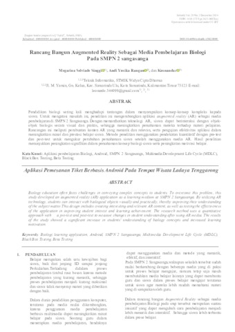 Pendidikan biologi sering kali menghadapi tantangan dalam menyampaikan konsep-konsep kompleks kepada siswa. Untuk mengatasi masalah ini, penelitian ini mengembangkan aplikasi augmented reality (AR) sebagai media pembelajaran di SMPN 2 Sangasanga. Dengan memanfaatkan teknologi AR, siswa dapat berinteraksi dengan objek-objek biologis secara visual dan praktis, sehingga meningkatkanpemahamanmerekaterhadapmateripelajaran. Rancangan ini meliputi pembuatan konten AR yang menarik dan relevan, serta pengujian efektivitas aplikasi dalam meningkatkan minat dan prestasi belajar siswa.Metodepenelitianmenggunakanpendekatankuantitatifdenganpre-testdan post-test untuk mengukur perubahan pemahaman siswa setelah menggunakan media AR. Hasil penelitian menunjukkan peningkatan signifikan dalam pemahamankonsepbiologisiswasertapeningkatanmotivasibelajar. Dari penelitian ini, dapat disimpulkan bahwa pemanfaatan augmented reality sebagai media pembelajaran dapat menjadi solusi inovatif untuk meningkatkan kualitaspembelajaranbiologidisekolahmenengahpertama. ============================================================ Biology education often faces challenges in conveying complex concepts to students. To overcome this problem, this study developed an augmented reality (AR) application as a learning medium at SMPN 2 Sangasanga. By utilizing AR technology, students can interact with biological objects visually and practically, therebyimprovingtheirunderstandingofthesubjectmatter. This design includes creating interesting and relevant AR content, as well as testing the effectiveness of the application in improving student interest and learning achievement. The research method uses a quantitative approach with a pre-test and post-test to measure changes in student understandingafter using AR media. The results of the study showed a significant increase in students' understandingofbiologyconceptsandincreasedlearningmotivation. From this study, it can be concluded that the use of augmented reality as a learning medium can be an innovative solution to improve the quality of biology learninginjuniorhighschools.