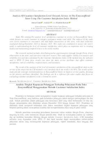 Zaini, Ahmad (2025) Analisis Tingkat Kepuasan Pelanggan Terhadap Pelayanan Pada Toko Enoysnofficial Menggunakan Metode Customer Satisfaction Index. S1 Sistem Informasi thesis, STMIK Widya Cipta Dharma.